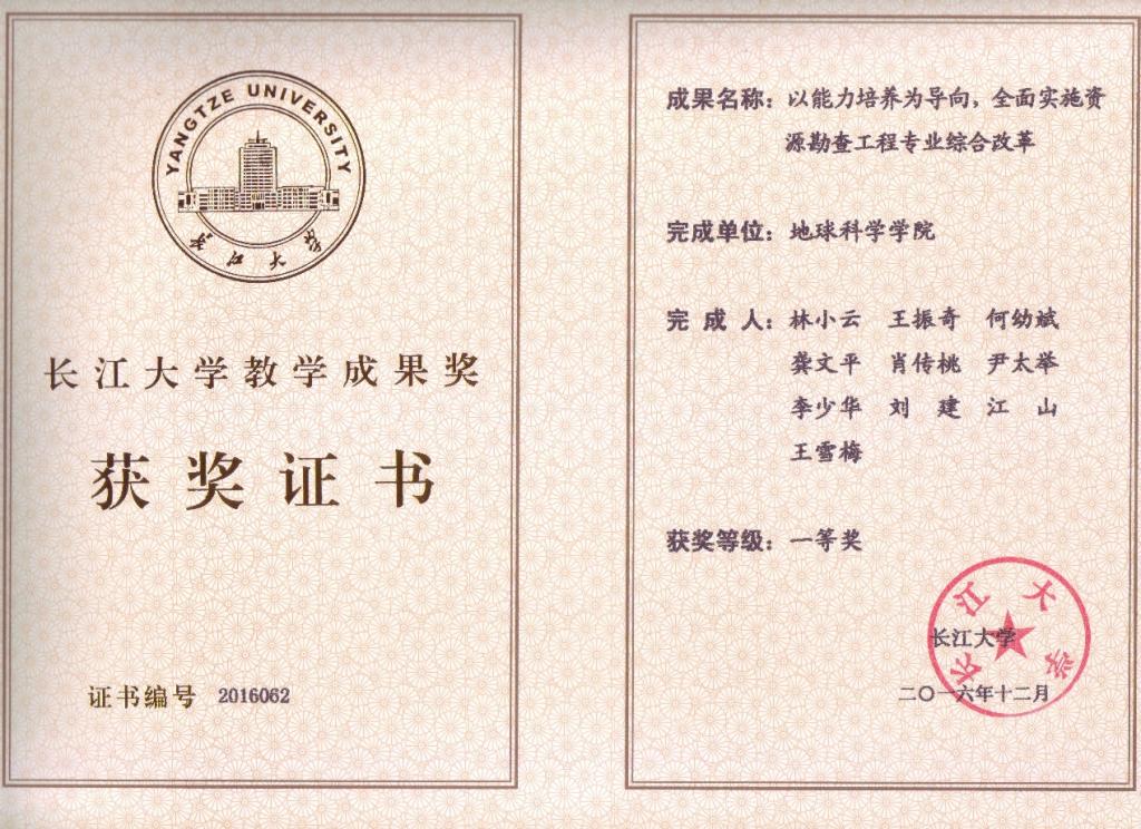 中国石油天然气集团公司优秀教学成果奖