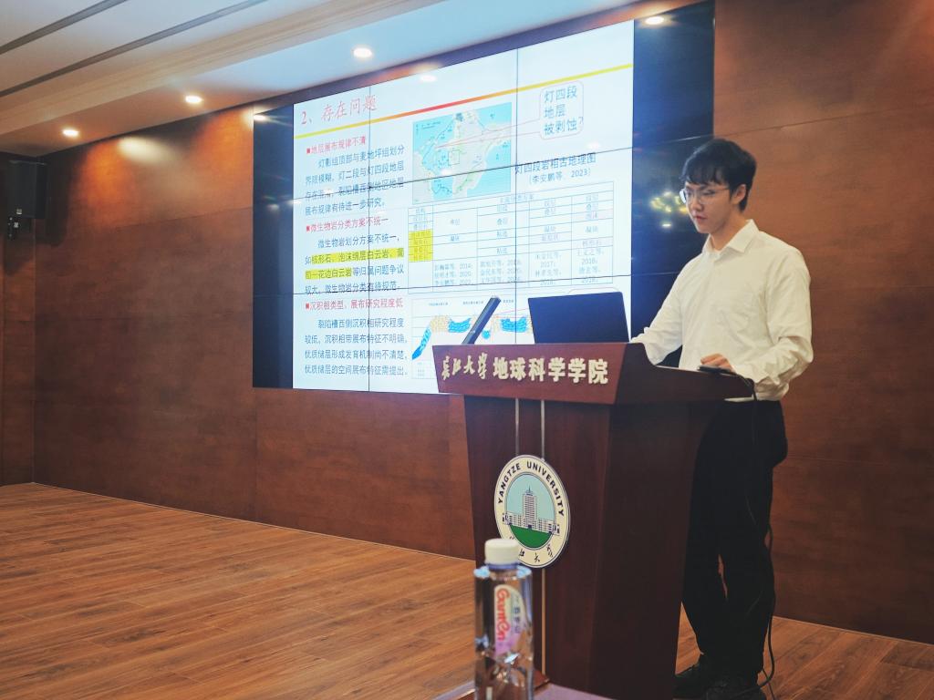 杨宏宇的论文题目为《德阳—安岳裂陷槽西侧灯影组沉积特征及演化研究》。四川盆地震旦系灯影组是重要的油气富集层系,地层展布规律不明确、沉积相演化模式缺失等问题仍制约勘探进程。杨宏宇的研究聚焦裂陷槽西侧灯影组,综合运用露头、岩心、薄片、钻测井及地震资料,系统揭示了沉积特征及演化规律,研究成果对指导油气储层预测具有重要意义。答辩委员会高度评价该研究的创新性与应用价值。叶加仁教授指出,论文首次系统揭示了裂陷槽西侧灯影组沉积演化模式,填补了区域地质研究空白,对川西南部油气勘探具有直接指导意义。