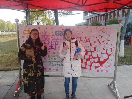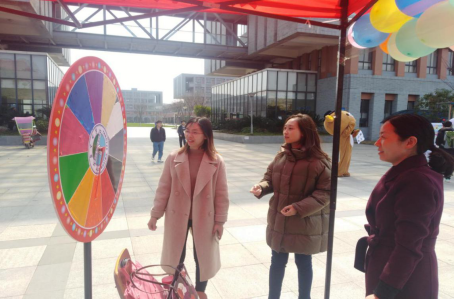 除此之外,还开展了别开生面的“心愿便利贴”和“幸运大转盘”的活动。心愿便利贴上承载着女生们的美好期望和更高目标,例如“稳过四六级”,“一起晨跑、健身”,“寻找考研小伙伴”等等。贴上心愿便利贴的女生们会获得转幸运大转盘的机会。男生们则可以通过实现女生在便利贴上写的愿望和女生一起在3月7日领取奖品。大家都积极地参加到了活动中来,现场十分热闹。有些老师看到后也高兴地来参加到了活动中来。
