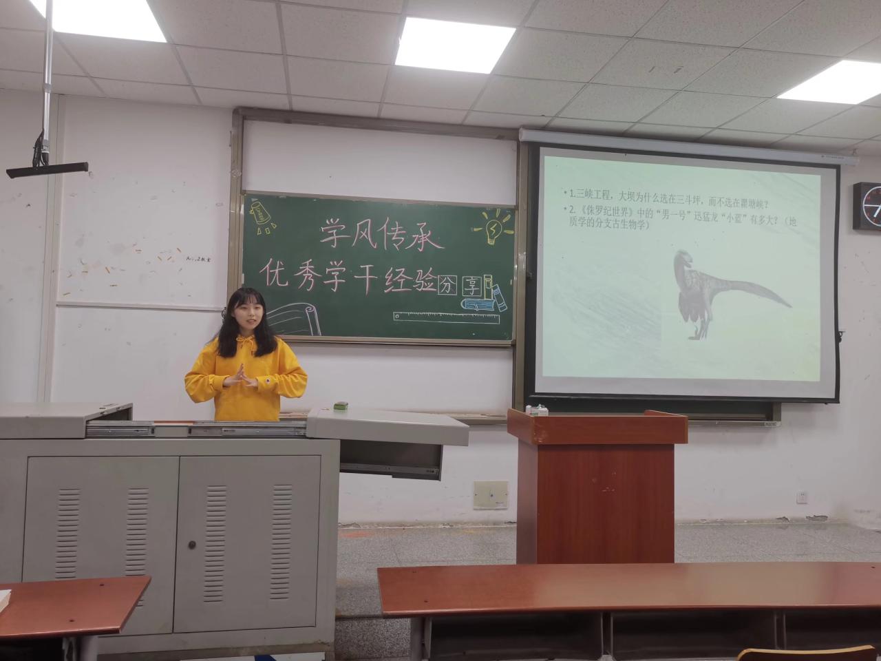 在地质学专业交流分享会上,主讲人有来自地质(旅游)21901的田思诚学姐和地质(资源)21801的周洁学姐,田思诚首先从选择地质学的原因为大家讲述自己的初心,让大家对地质学有了新的认识和了解;接着从三峡大坝的建设原理及地震中的地质知识让大家了解到生活中的地质学。周洁以自身经验向大家提出一些地质学学习中的建议,强调了自学的重要性以及考前复习的捷径,并和同学们讨论了大学该如何学习这一话题。