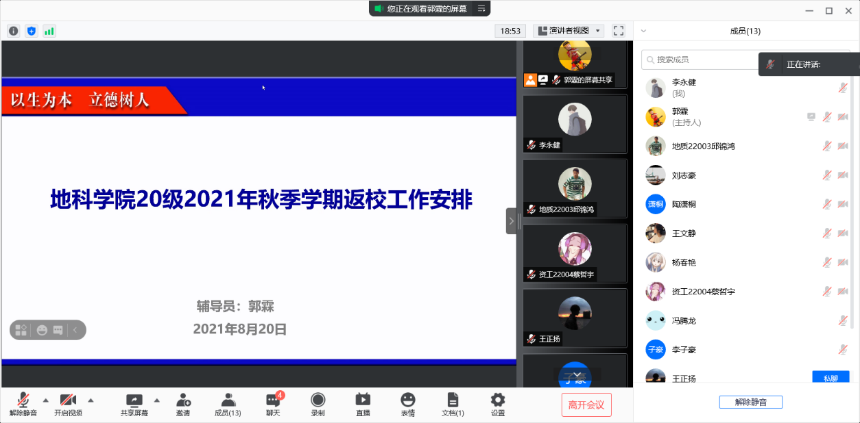 主题班会由各年级辅导员负责,并分两步进行。第一步先由各辅导员组织召开班长及安全员会议,会议主要从返校流程要求、常见问题、疫苗接种、日常防护等方面展开。重点强调了要严格遵守公司的疫情防控及开学返校工作要求,不得私自返校;同时要求坚持每天打卡,非必要不出门,保证自己的健康绿码和行程绿码,积极接种疫苗。第二步由各班班长组织召开班级会议,确保公司及公司疫情防控及返校工作精神无一遗漏传达给每位同学,并组织同学们填写返校申请审批表。