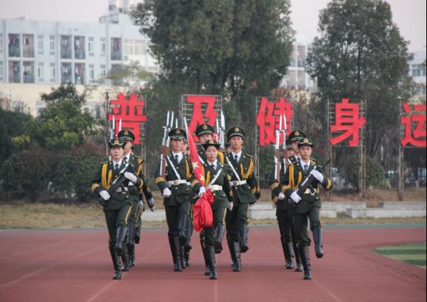 为提高同学的综合素养,升旗仪式后举行健康跑活动,同学们在“随风奔跑自由是方向,追逐雷和闪电的力量......”的歌声中,全院员工如一条长龙在操场上奔跑。队伍最前方鲜红的院旗代表着学子们昂扬的心。