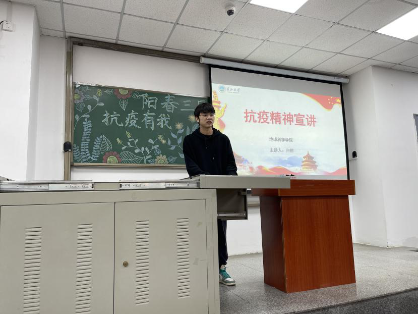 (通讯员 贾凡琛)为了加强公司员工对无私奉献雷锋精神的理解,弘扬伟大抗疫精神,鼓励大家向身边的“活雷锋”学习,并进一步增强同学们的疫情防控意识。公司于3月31日下午4点半在武教B106,举办以“阳春三月,抗疫有我”为主题的抗疫精神宣讲活动,五位员工抗疫志愿者代表分享了自己的抗疫的经历与感悟。分团委书记郭霖老师及全院入党积极分子参会。