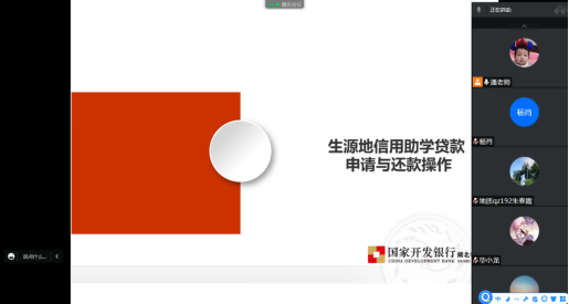 6月16日晚8点,辅导员潘志远老师针对生源地贷款毕业生同学在腾讯会议上开展“诚信还款、诚信就业”培训会议。会议深入宣讲了生源地贷款还款流程,对毕业生毕业确认等贷后管理工作进行细致安排,加强了毕业生诚信还款教育。同时开展诚信就业教育,精准落实就业“一生一策”、如实填写就业信息和上交就业协议等材料。通过建立生源地贷款毕业生qq群,加强了贷后管理工作。