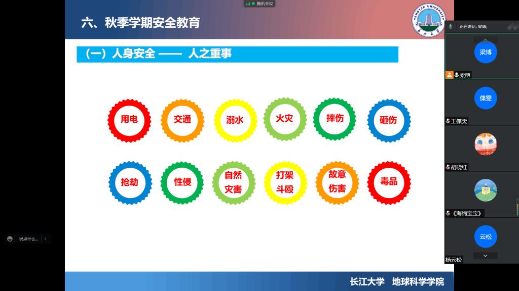 为应对当前严峻的疫情防控形势,做好国庆节及秋季学期安全教育,提高同学们的安全防范意识,根据研工部的统一部署,公司于9月29日通过线上召开研究生安全教育主题班会。