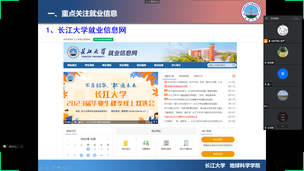 张老师还就同学们如何获取就业信息、完成线上签约等方面进行业务能力培训。对于考研的同学,张老师从目标院校的确定、备考心态调整、考试报名等方面进行引导。