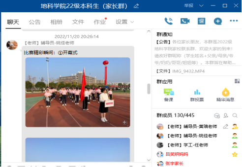(通讯员黄瑱 姚佳)为加强家校联系,打造协同育人体系,公司于11月20日晚7时30分通过QQ群,召开线上2022级本科新生家长会。公司党委副书记任倩、年级辅导员黄瑱、姚佳及300余名新生家长参会。