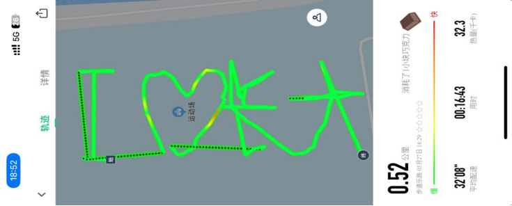 在健身跑创意路线PK环节中,同学们用脚步丈量校园,跑出“长大20年”、“我爱长大”等字样的足迹。