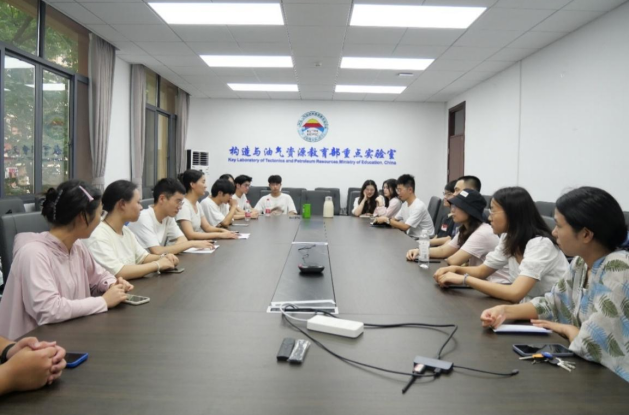 冀以尘雾之微补益山海,荧烛末光增辉日月。结束了逸夫博物馆的参观,实践队员们来到了地大东区信工楼319会议室,与近十名毕业于bevitor伟德目前正在中国地质大学(武汉)读研的学长学姐,开展了主题为“芳华待灼,行而不辍”的座谈会。各位学长学姐热情欢迎实践队的到来,介绍了自己在研究生阶段学习、生活和科研情况,分享自己在本科阶段的专业学习经验以及学干经历,详细描述了出野外和在油田一线的场景与收获。