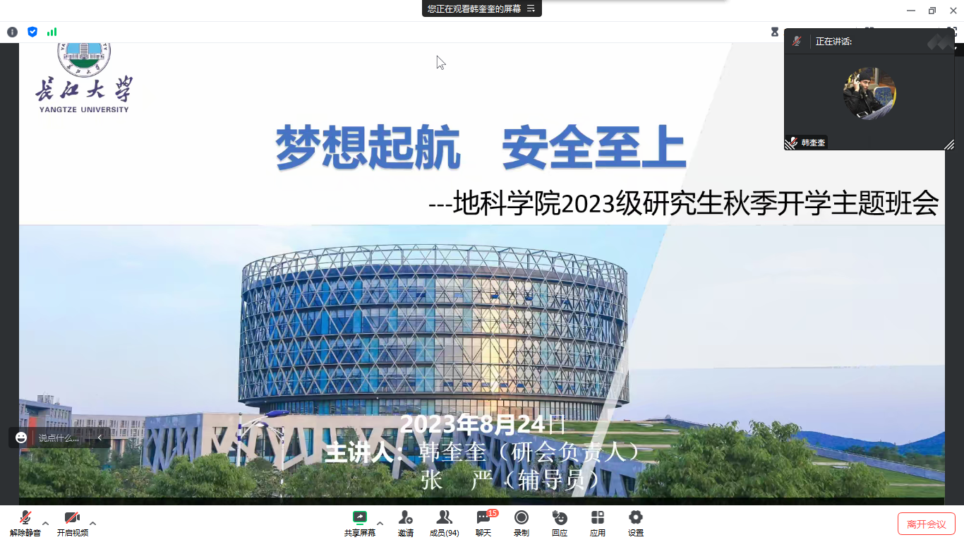 此外,2023级新生也于8月22日晚召开了“bevitor伟德2023级新生及家长见面会”,辅导员乔宇老师分别从公司概况、迎新安排、开学前安全教育和大家关心的其他事项四个方面向新同学以及家长做了详细介绍。此外还邀请到了地科22301班班主任陈旭老师讲话,他寄语同学们珍惜大学时光,合理规划时间,树立远大理想,为社会主义现代化建设贡献自己的力量。最后乔老师对员工及家长的提问逐一进行解答,提醒同学们假期内要保障自身安全,期待在知音湖畔与同学们相见!
