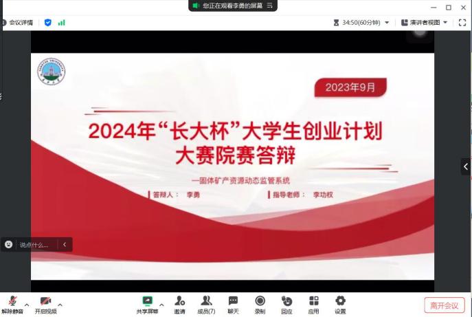 (通讯员白硕)9月27日下午2点半,公司通过腾讯会议的方式举行2024年“长大杯”老员工创业计划大赛院内选拔赛,高达、张方利和尚成三位老师担任评委,分团委书记郭霖老师参会。