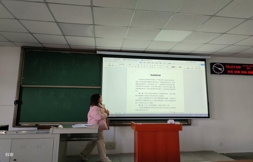 在国家宪法日当天,学工办全体教师牵头,组织全体2023级本科生、员工入党积极分子、党员以及青马班同学参加以《与光同在,与法同行》为主题的升旗仪式。员工代表资工22301班苏佳芮、地信22302班杜明霖分别发表国旗下讲话,倡导同学们平日应增强对宪法的认识。同时,姚佳老师呼吁同学们:“要学习宪法、尊重宪法、信仰宪法,坚决维护宪法权威,为我们的国家和未来,注入持久的动力和信心。”升旗仪式结束后,公司组织员工集中学习观看“宪法晨读”活动直播,通过线上线下相结合的方式,让员工共同参与宪法的诵读和学习,在认真阅读宪法的过程中,深刻领会宪法精神,展现良好的学习风貌。此外,校园内还设立了宪法宣传展板和标语横幅,营造了浓厚的宪法宣传氛围。