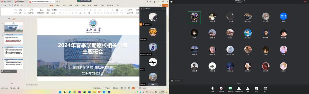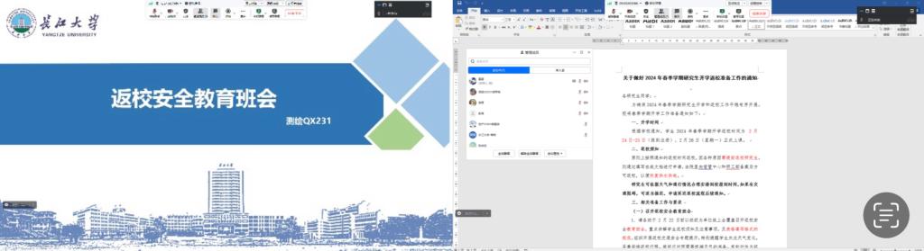 (通讯员 王少宁)武汉新一轮雨雪极端天气来袭,为确保员工平稳有序返校,公司员工事务办公室接到公司党委员工工作部工作要求后,于2月20至22日组织全体研究生参加以班级为单位,通过腾讯会议等平台召开的2024年春季学期返校安全教育班会,会议由各班班长主持。