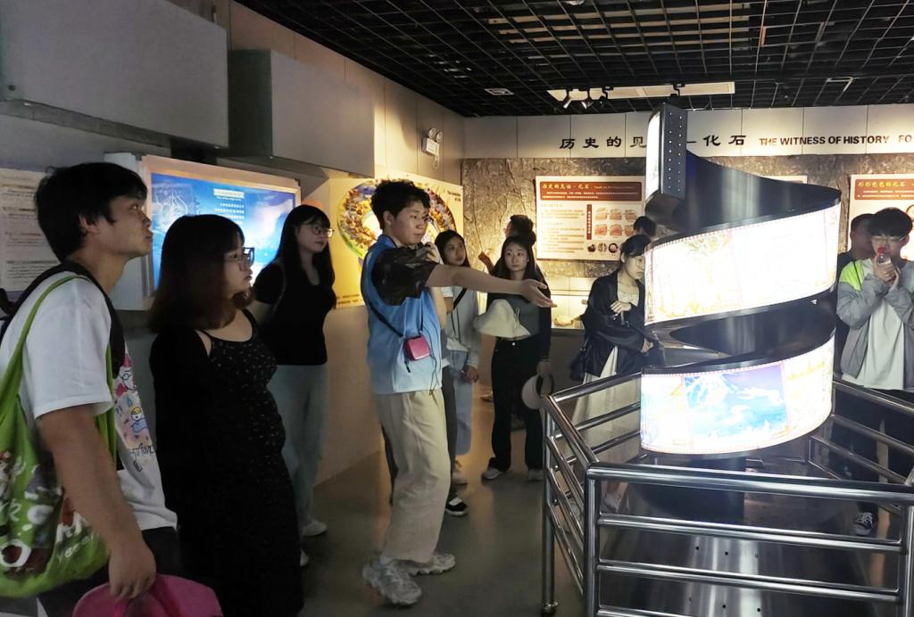 “3万多件展品不仅是时间的见证,也凝结着地质工作者的脚步、汗水和智慧”,“细细观察每一块矿石,与地球的历史和自然的力量进行对话”,“从演化上来看,生命在宇宙中出现本身就是偶然,人类能够出现更是一种奇迹”,志愿者的讲解引导着同学们的视线,更引领大家敬畏历史、珍爱生命,涵养理性、平和的心态。