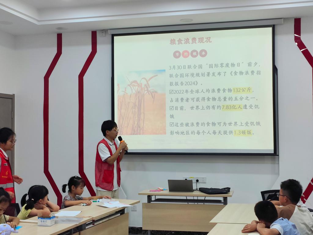 (通讯员 党雪彤)一滴水,不算多,一滴一滴汇成河。一粒米,不算多,一粒一粒积满箩。为提倡“厉行节约、反对浪费”的社会风气,培养公民勤俭节约的良好美德,7月16日公司“后浪”暑期社会实践队在高湖社区“暑假学堂”为社区的孩子们开展了节约粮食讲座。