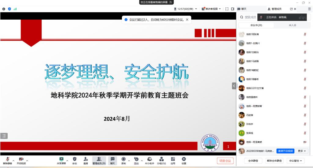 此外,老师们还强调文明上网、关注个人心理健康、注意返校时间节点以及配合班长完成暑期校行程收集工作等。本次主题班会结束后,公司学工办会将员工返校信息同步到家长群、班主任群及导师群,以发挥公司、家庭协同育人作用,确保全院员工顺利步入新的学期。
