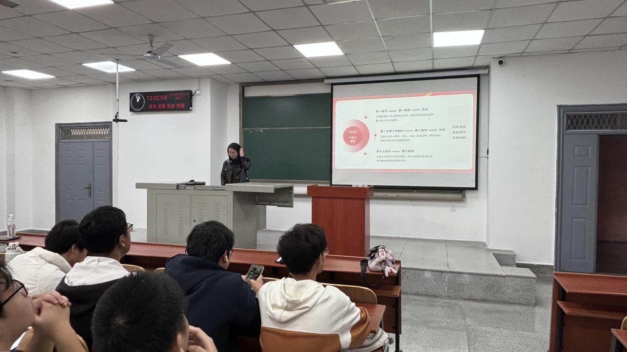 随后,郭老师围绕党的二十届三中全会的主题由来、做出的部署以及展现的创新三个方面,对全会精神进行了系统深入的解读。她通过生动的阐述、具体的案例和详实的数据,使在座同学对全会精神有了更深刻的理解和认识。郭老师还特别提到,面对纷繁复杂的国际国内形势、新一轮科技革命和产业变革以及人民群众的新期待,我们必须自觉把改革摆在更加突出的位置,紧紧围绕推进中国式现代化进一步全面深化改革。