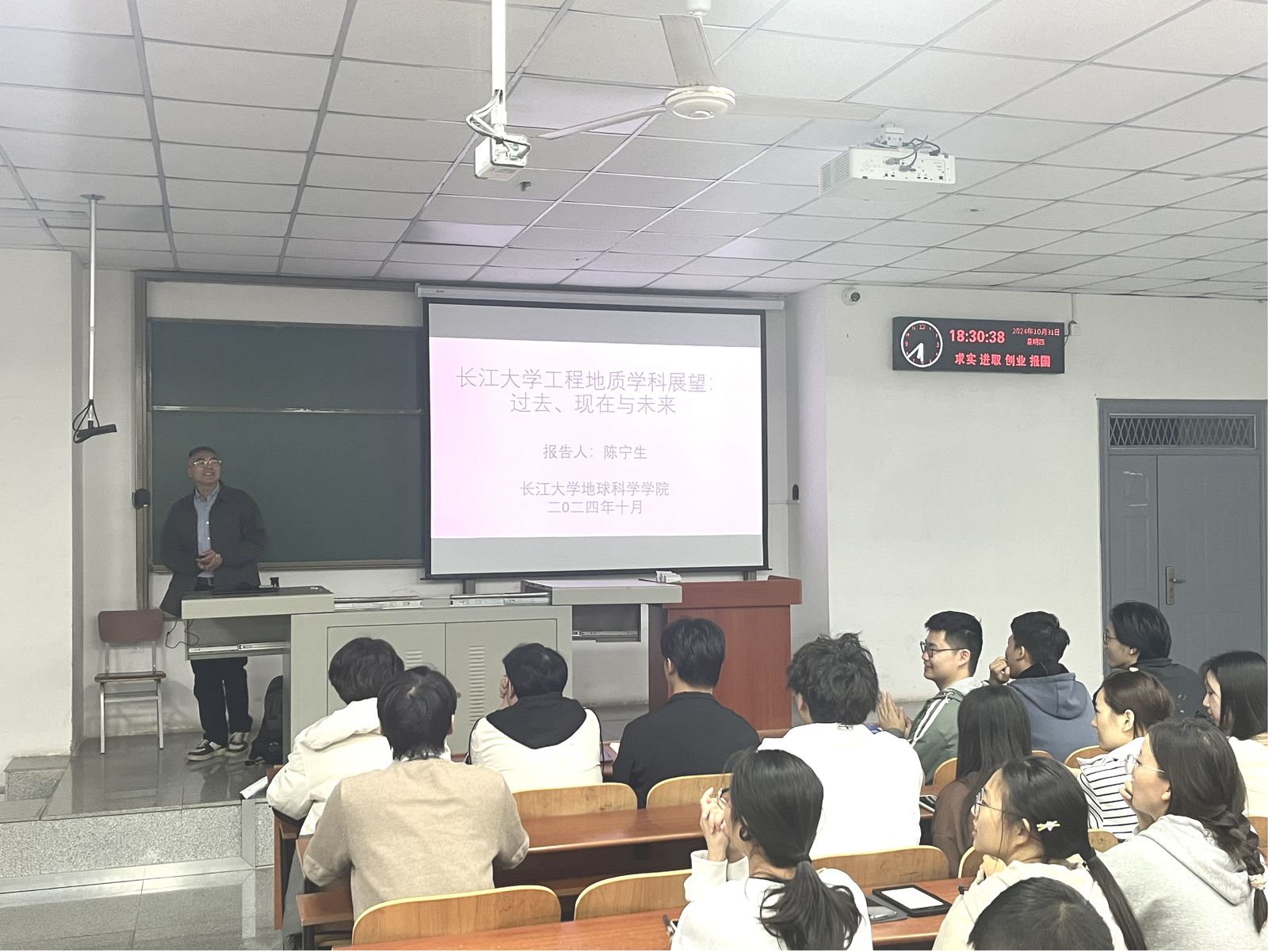 (通讯员 郭霖 党宇烁 李永健)为提高员工专业学习兴趣,帮助员工了解学科动态,助推公司学风建设,10月31日晚公司陈宁生教授做客“导师进班会”系列活动,在武教B103教室开展了题为“BEVITOR伟德工程地质学科展望——过去、现在和未来”的主题班会。陈教授团队教师、22和23级地质系全体本科生参会,现场掌声雷动,气氛热烈。