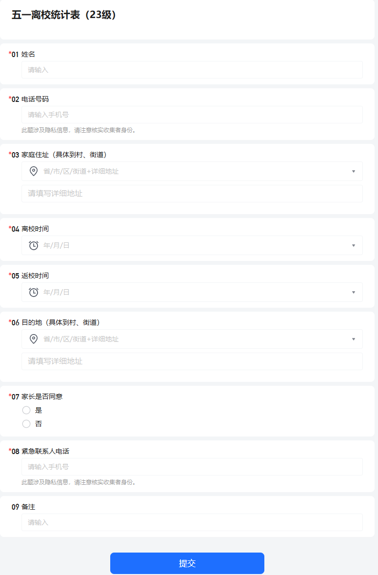 公司严格执行请销假制度,精准掌握员工行程动态,制定并公布了学工办“五一”假期值班表,全天候为同学们的安全保驾护航;每日组织全体员工通过“今日校园”APP完成定位打卡,对于临时不在校或请假同学要求填写腾讯文档收集表;同时组织全体同学填写“五一”假期离校去向表,落实安全教育管理,精准登记员工假期行程。