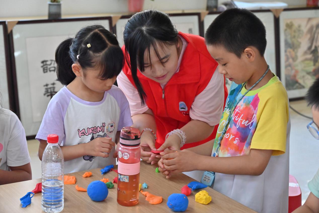 随后,储思佳将科普的焦点转向了地球的内部结构。为了让孩子们更直观地理解这一抽象的知识,他巧妙地利用现场发放的不同颜色的橡皮泥,开启了一场趣味十足的“地球构造”手工课。他一边详细地讲解地球的各个圈层,从地核的炽热到地幔的流动,再到地壳的坚硬,一边示范着如何用橡皮泥模拟地球的结构。孩子们全神贯注地听着,小手跟着储思佳的指导忙碌起来,不一会儿,一个个色彩斑斓、形态各异的“地球”在孩子们的手中诞生了。看着自己的作品,孩子们的脸上洋溢着自豪的笑容,对地球的内部结构也有了更深刻的认识。