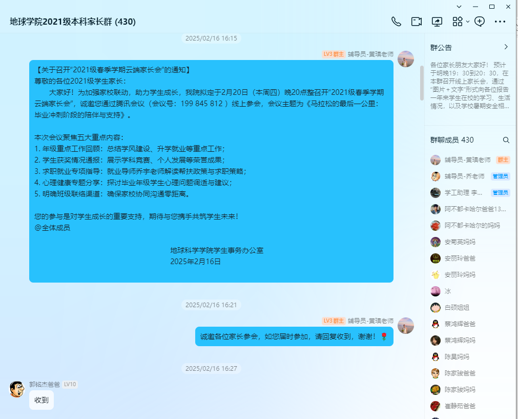 本次家长会构建了家校互信的沟通平台,强化了双方在员工成长成才路上的共同责任。公司将继续推进“五育并举、两线贯穿、全员覆盖”的思政工作体系,与家长携手同行,为21级员工圆满完成大学学业、走向社会奠定坚实基础。