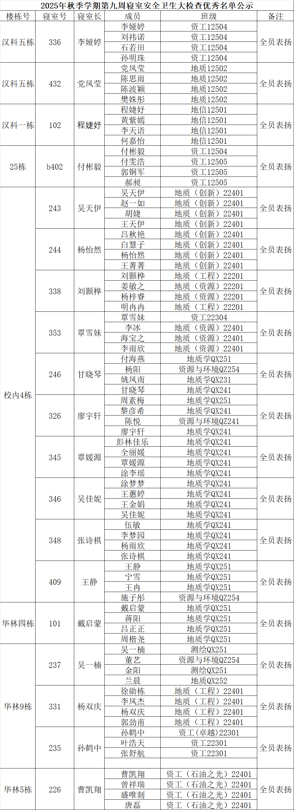 一、通报优秀寝室