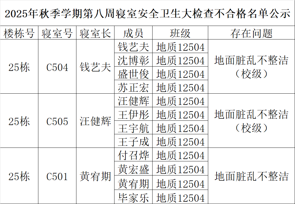 二、通报不合格寝室