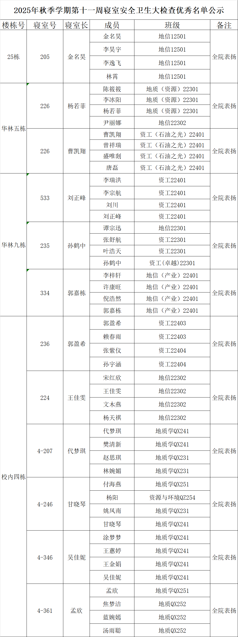 一、通报优秀寝室