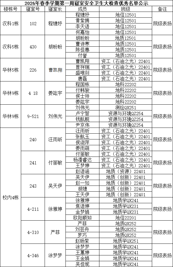 上一条:关于2025-2026学年第二学期第4周寝室安全卫生大检查情况的通报